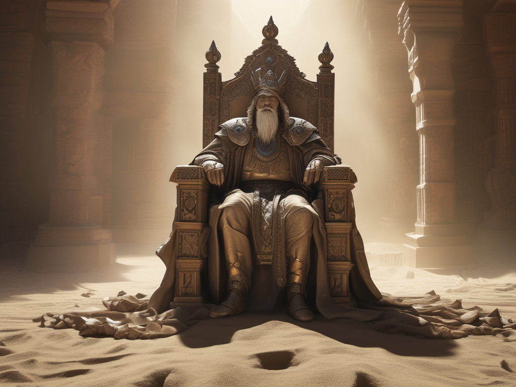 In the shimmering desert kingdom of Aurum, King Impius, a man crinkled like parchment and as stubborn as a bovis, clung to his throne. His once-golden hair had turned to desert dust, and his eyes, once bright with ambition, were clouded by a lifetime of hoarding and cheating. His reign, once a beacon, had become a withering sun, scorching the land with his selfishness.